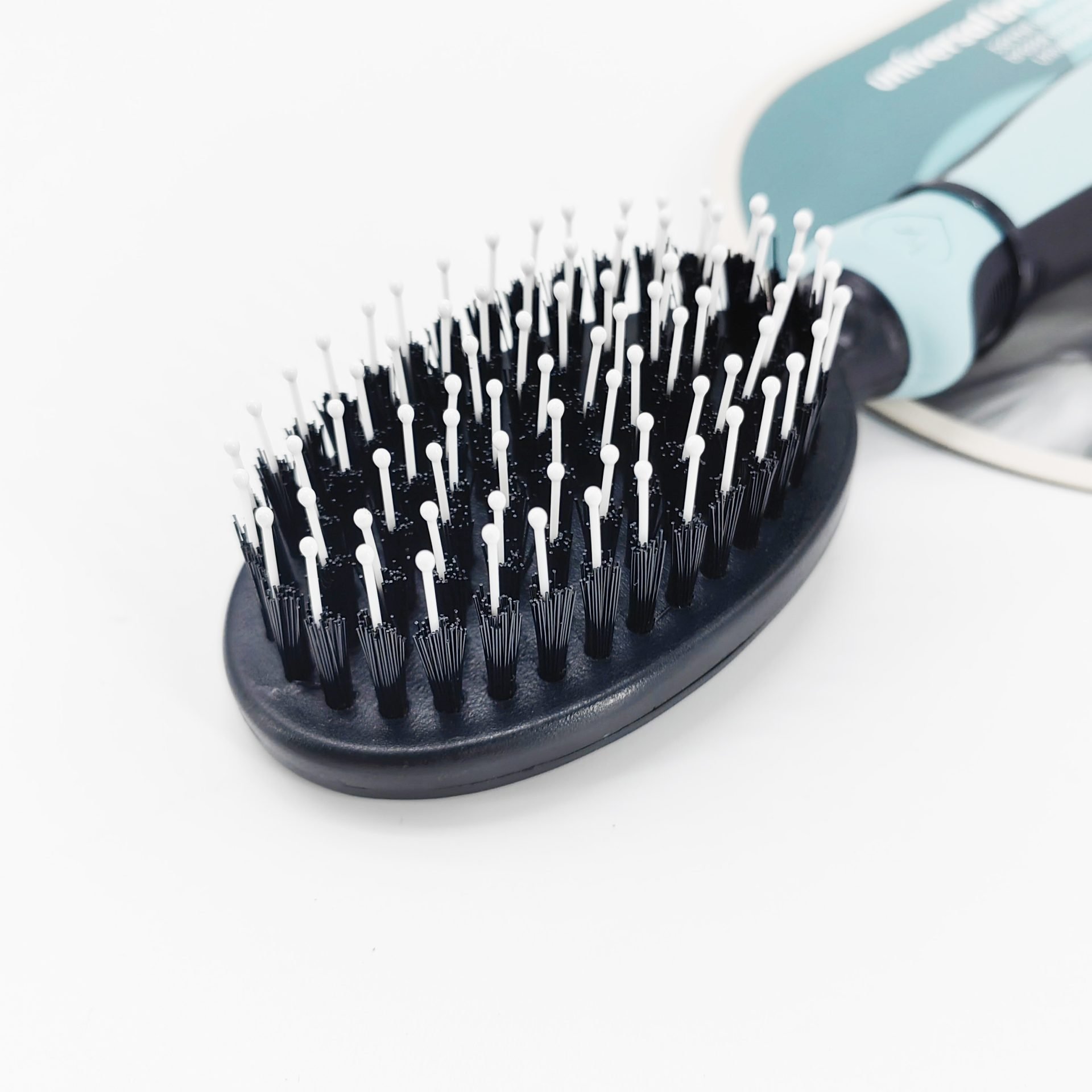 Aan het uiteinde van elke pin zit een kunststof bolletje. Deze zorgen ervoor dat de borstel veilig en comfortabel is in gebruik en geen schade veroorzaakt aan de gevoelige huid. Daardoor is deze borstel uitermate geschikt voor dagelijks gebruik.